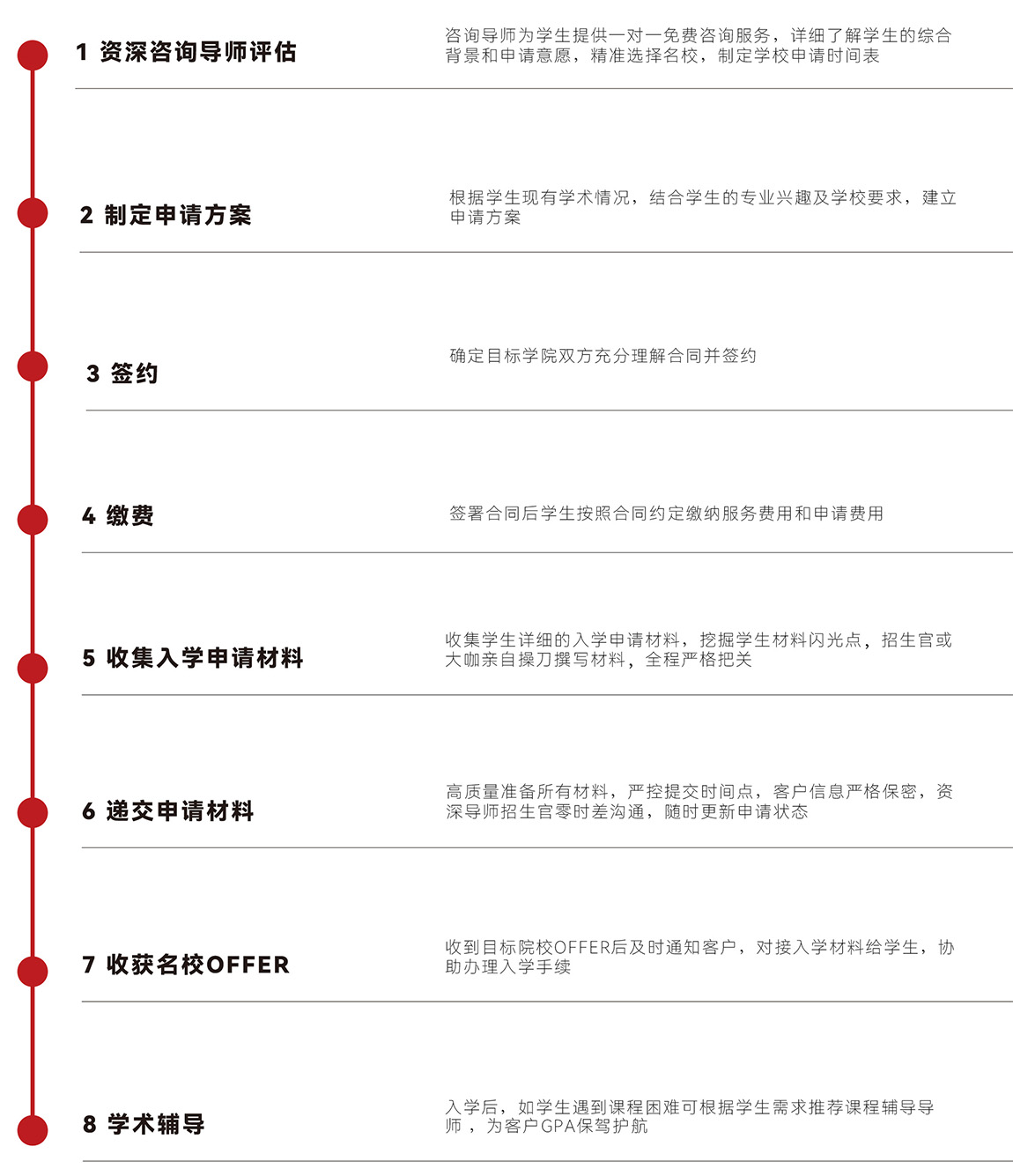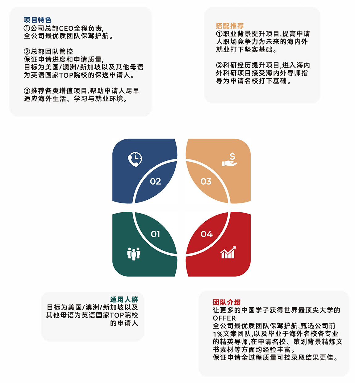 VIP定制申请项目,打破学校传统录取底线,完成低分高录、低分超录。当自身条件不足以申请到目标学校时,通过精准背景提升,高效优化申请竞争力,实现100%拿到目标院校OFFER。